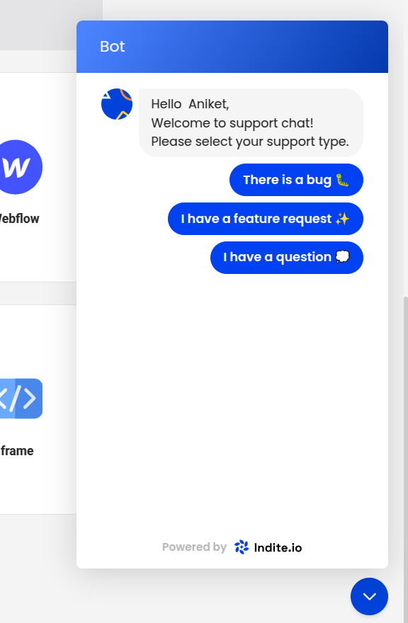 The Bubble embed presents your bot as a floating chat bubble, typically positioned in the bottom-right corner of your site. It can open automatically, on user interaction, or display a proactive preview message to engage visitors.