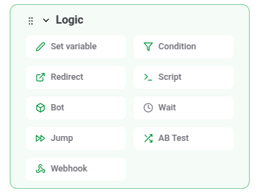 This guide introduces the main block categories: Bubbles, Inputs, Logic, and Integrations. Each category serves a specific purpose in building your bot’s functionality.