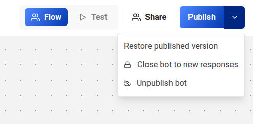 - Restore Published Version: Discards your current changes and reverts the bot to the last published version.